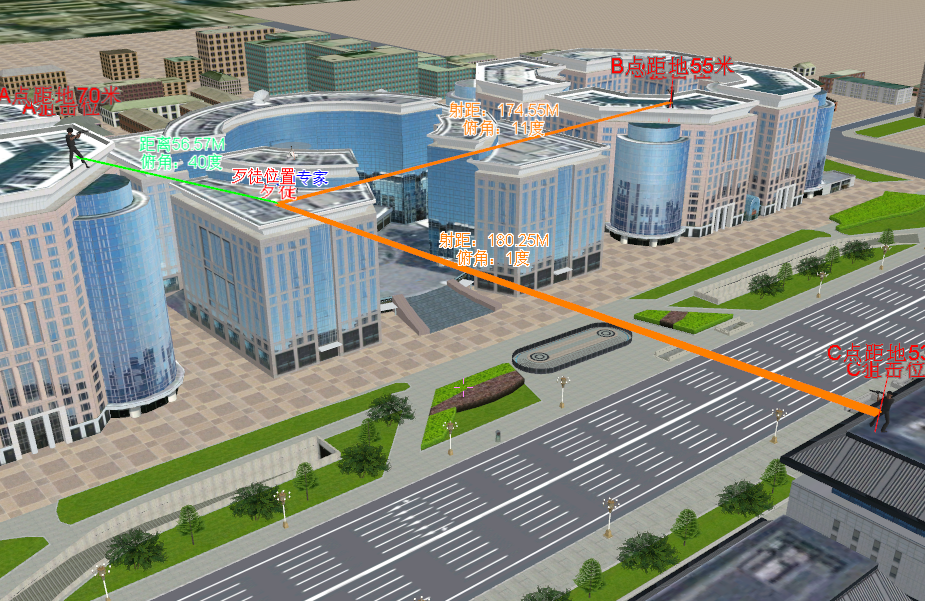 通過平臺(tái)提供的三維空間分析功能,如通視分析、距離測(cè)量、剖面分析等工具,可以協(xié)助警察制定警力布控方案。