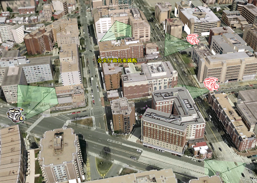 系統(tǒng)提供接口,可以接入視頻信號,在三維場景中通過點擊相應(yīng)的攝像頭符號,可以調(diào)取視頻監(jiān)控錄像,進行播放、回放等操作。從而實現(xiàn)對轄區(qū)的實時監(jiān)控管理。