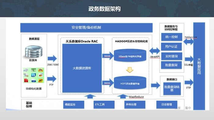 基于大數(shù)據(jù)的政務(wù)信息資源綜合利用平臺構(gòu)建了統(tǒng)一的政務(wù)及社會公共信息資源平臺,平臺整合的信息資源涵蓋政務(wù)信息資源和與城市、企業(yè)、市民相關(guān)的社會公共信息資源。平臺支持從數(shù)據(jù)采集、處理、存儲、管理到分析、利用的全業(yè)務(wù)過程。